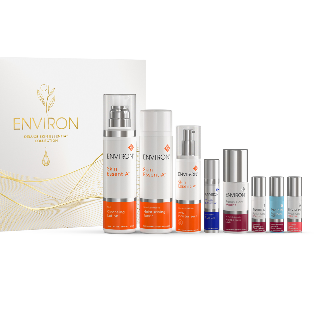 Here’s this year’s amazing Deluxe Skin EssentiA 2025 Christmas Set that has 4 great complimentary products including a COMPLIMENTARY full-size Avance Elixir Serum.